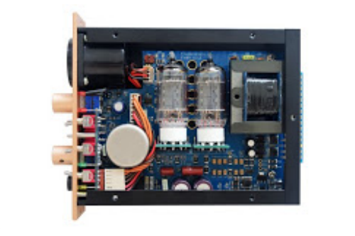 2 本の真空管(ECC802S と ECC803S)、US 製インプット&アウトプットトランスフォーマーを搭載したマイクプリアンプです。